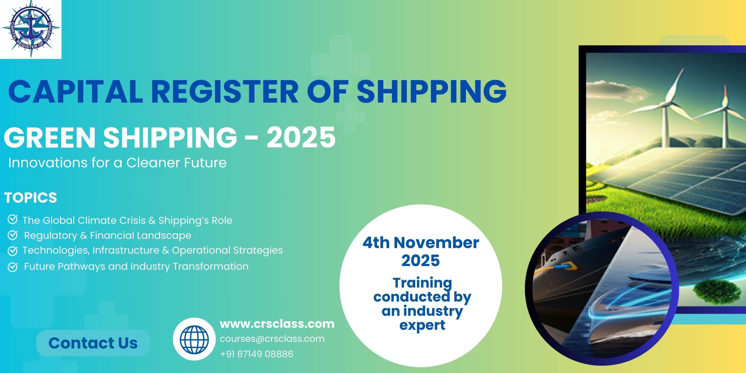 Green Shipping Course - 4th November 2025 Capital Register of Shipping is excited to announce the Green Shipping Course 2025 – designed to equip maritime professionals with the latest insights...